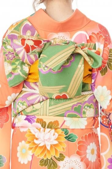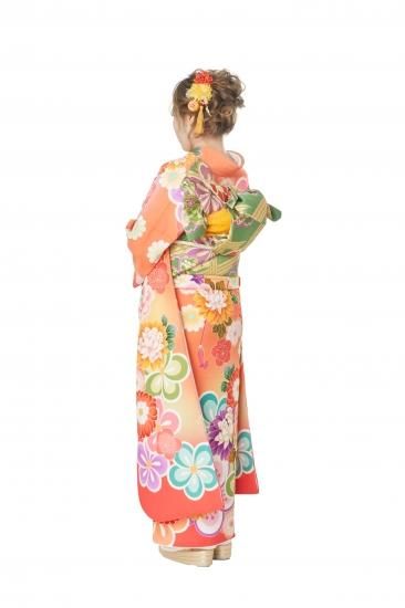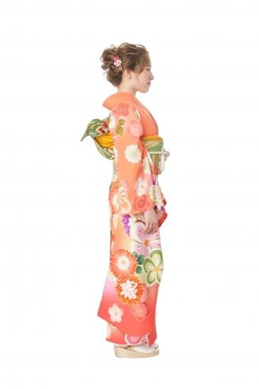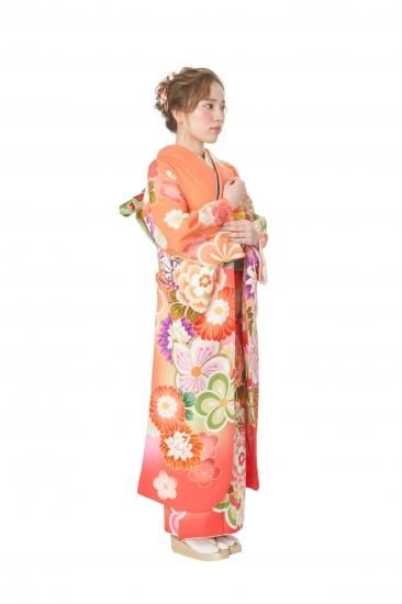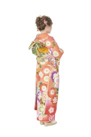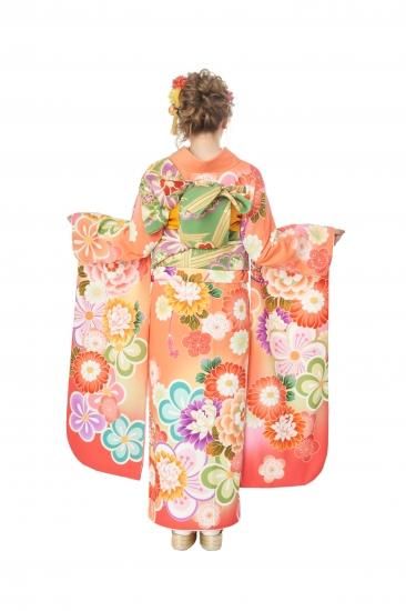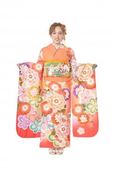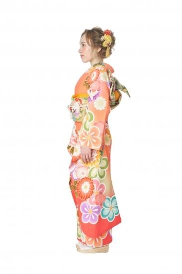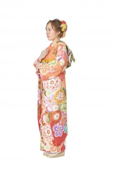 オレンジ系の地色で可愛らしさを追求した振袖の一枚です