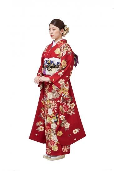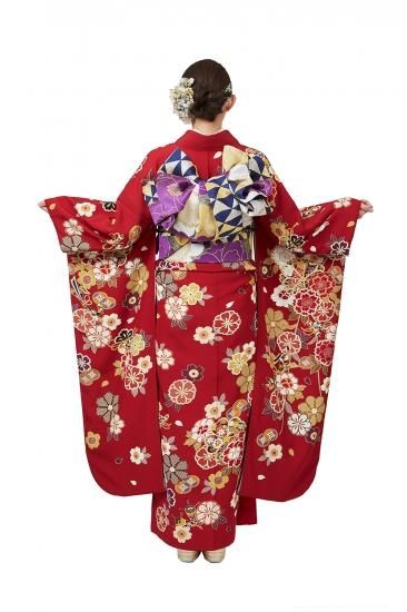振袖には珍しい、小さめの可愛らしい花々を散らした可憐な一枚です。スッキリとした感じがお好きなお客様にお勧めです。