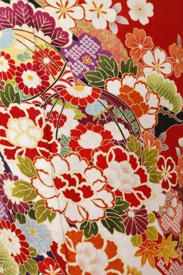 鞠や四季折々の花々が華やかな振袖です。